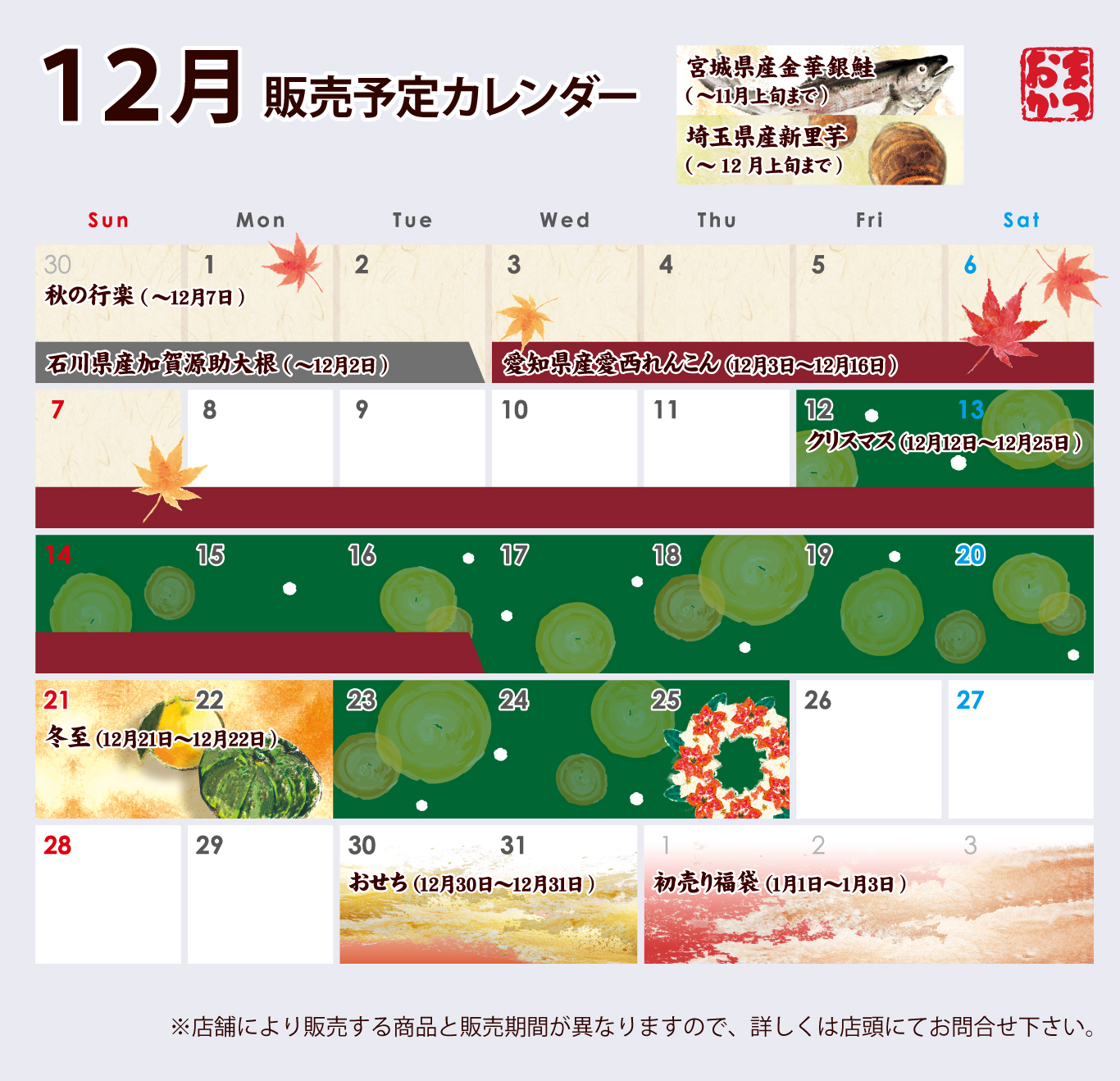 お惣菜のまつおか 販売予定カレンダー