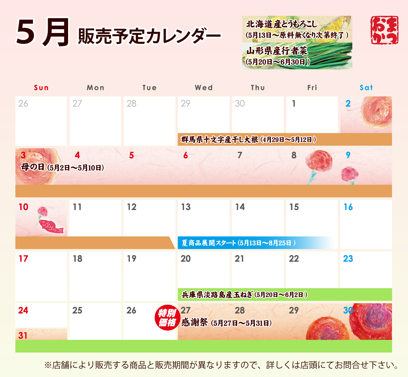 ご紹介する商品は、店舗ごとに販売期間が異なります。